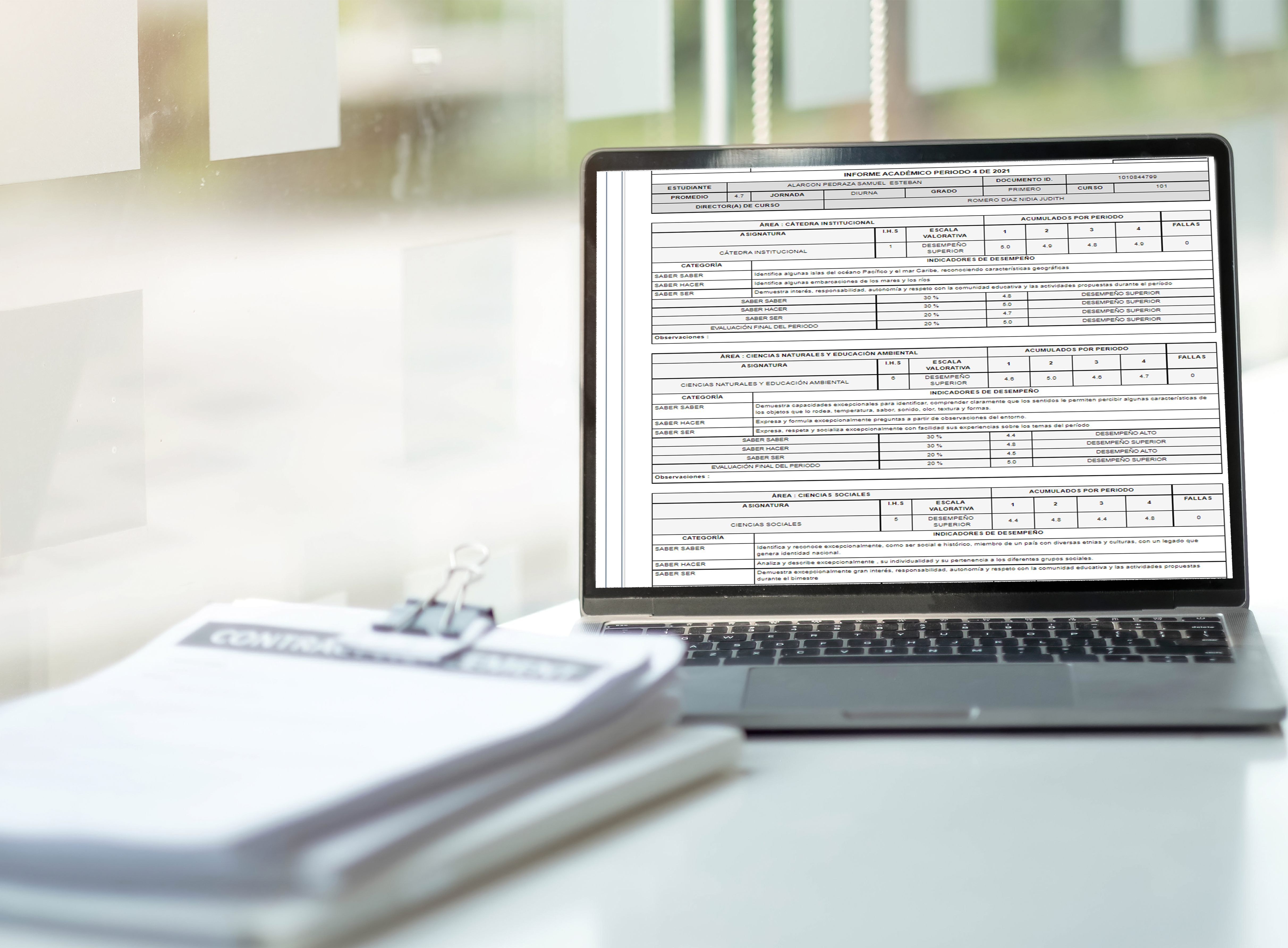 A través de nuestro aplicativo Web, podrá parametrizar toda la información relacionada con estudiantes, docentes, asignaturas e indicadores de desempeño, valores pecuniarios y mucho más.